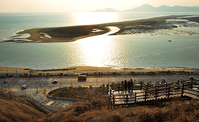 洛東江の河口にある峨嵋山展望台は、峨嵋山の南側の端にある。砂島、渡り鳥、日の入りなど自然景観が見られる場所。洛東江の河口の姿と三角洲の形成過程、地質に関する資料がわかりやすく展示されている。